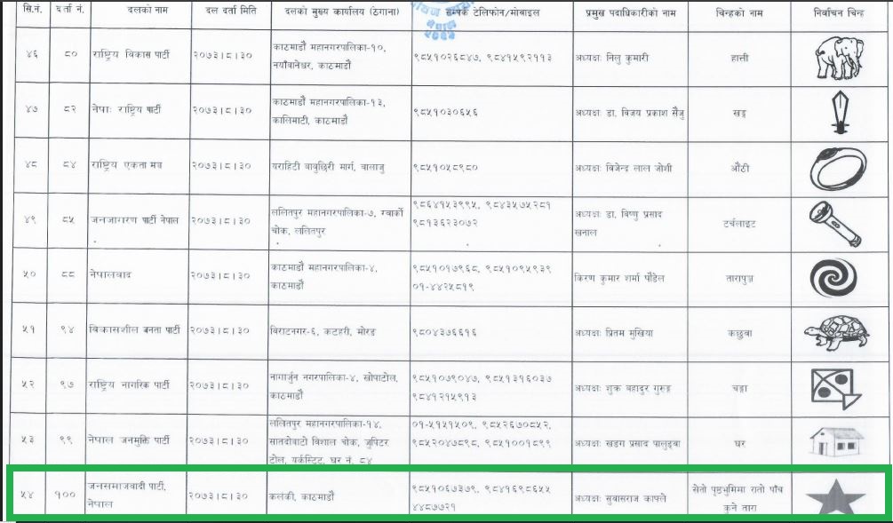 तारा चुनाव चिन्ह पहिले नै जन समाजवादी पार्टी नेपालको नाममा दर्ता