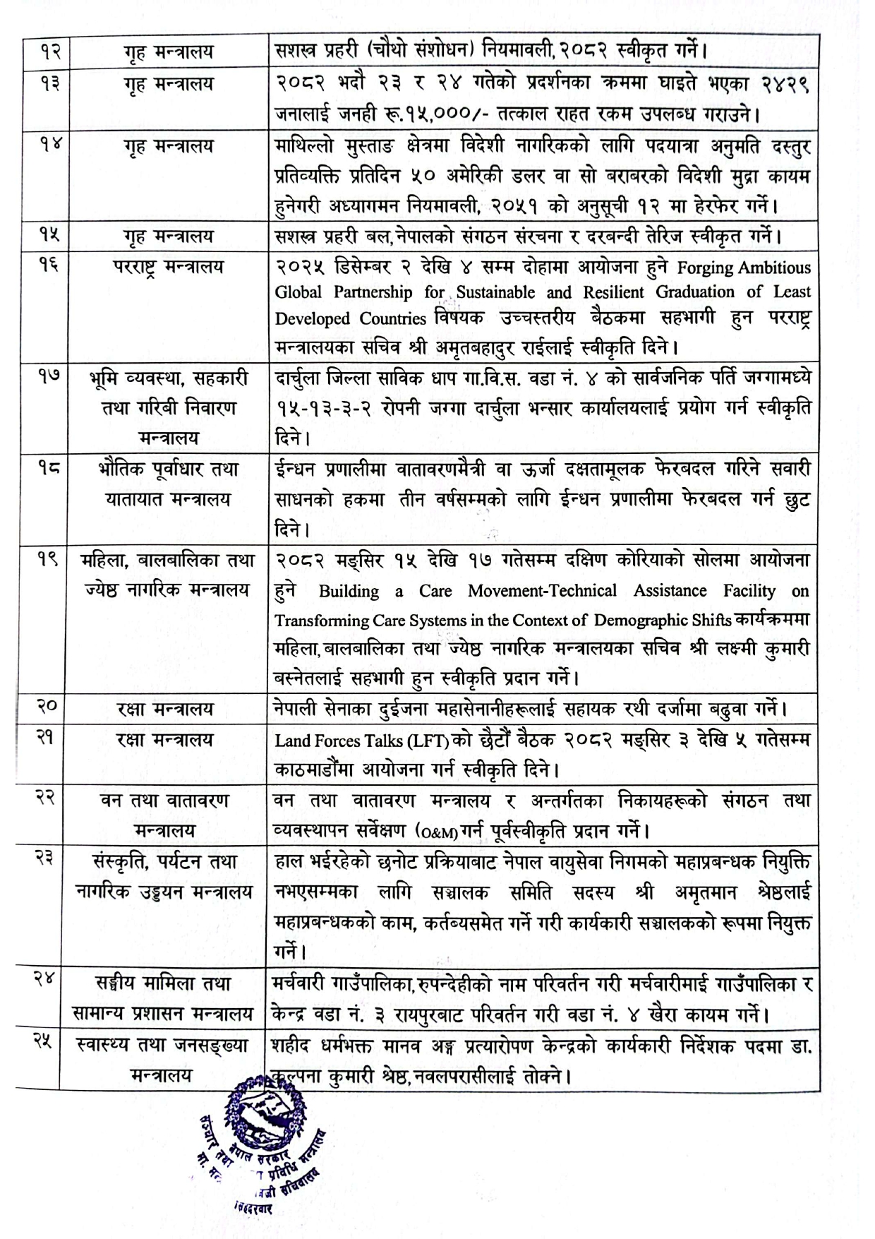 सरकारले सार्वजनिक गरेका निर्णयहरूः–