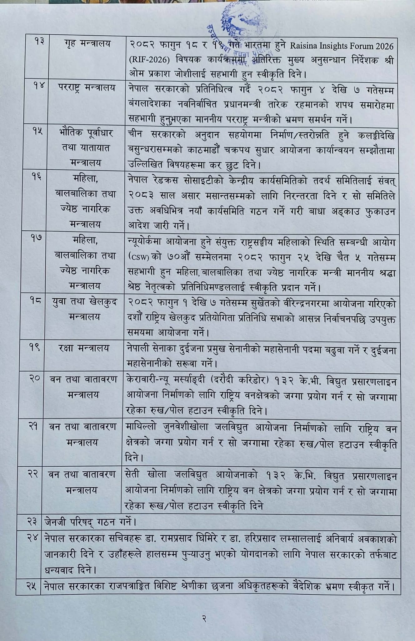 काठमाडौ । सरकारले हिजो बसेको मन्त्रिपरिषद् बैठकको निर्णय सार्वजनिक गरेको छ ।