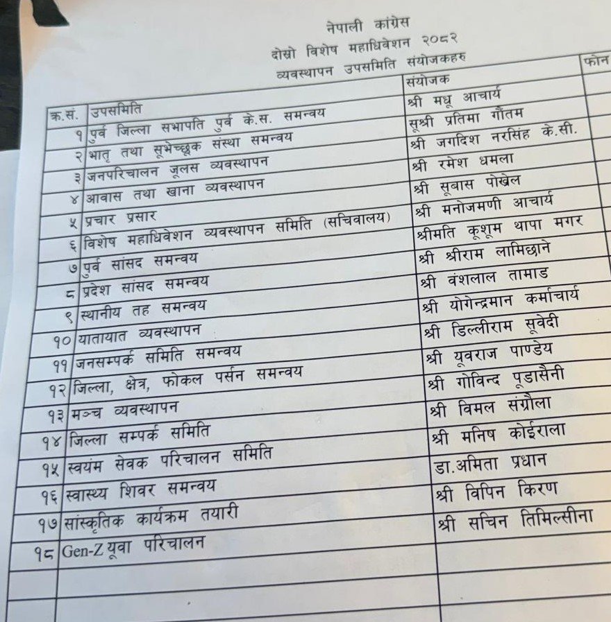 नेपाली कांग्रेसले विशेष महाधिवेशनका लागि १८ उपसमिति गठन