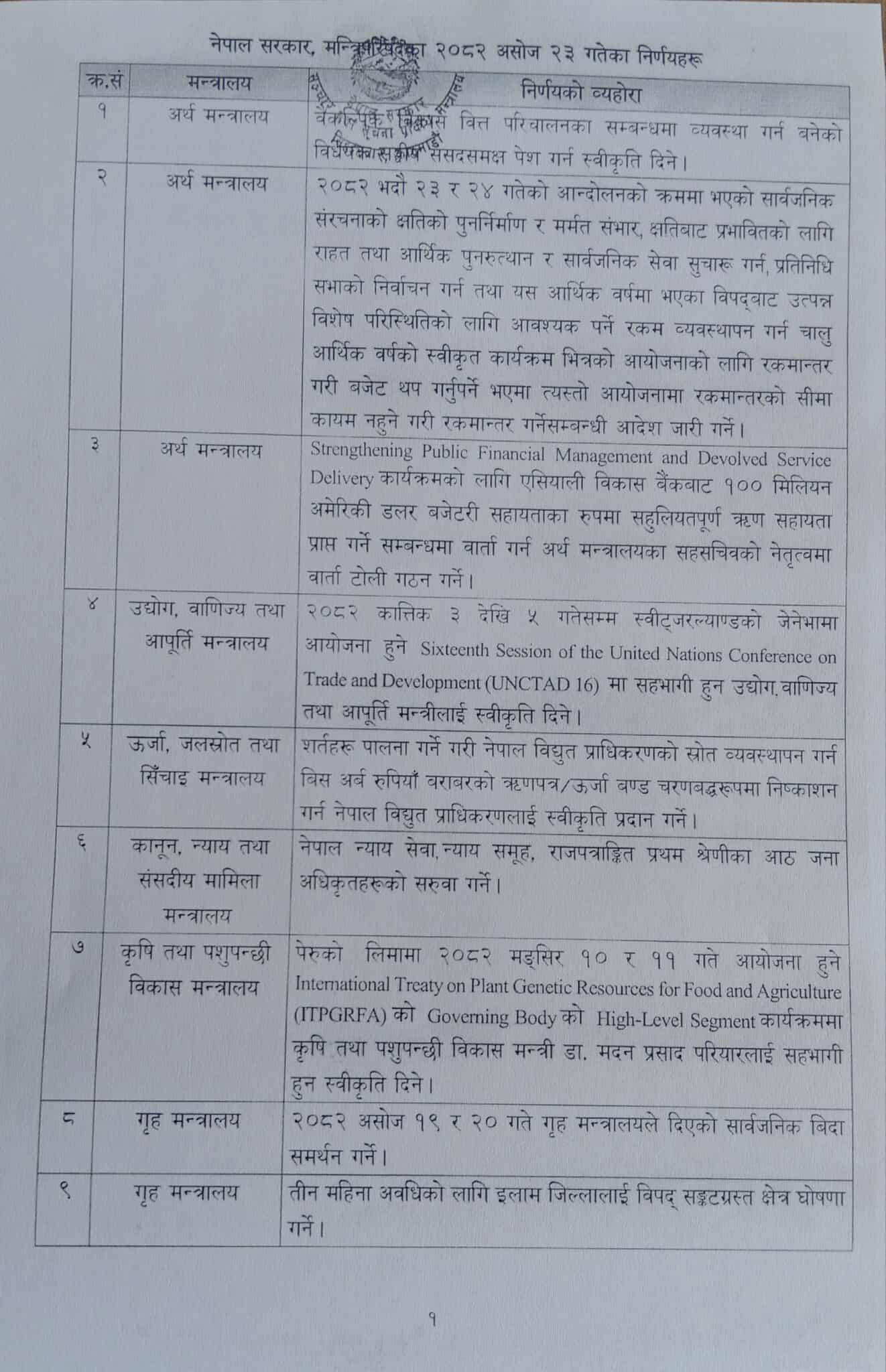 मन्त्रिपरिषद् बैठकका २० निर्णय